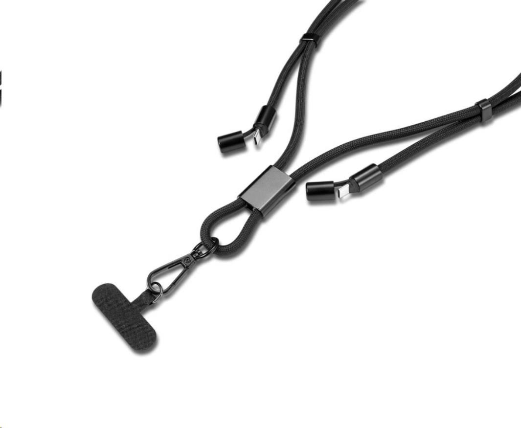 Dvě v jednom – crossbody lace + kabel USB-C pro nabíjení a data.