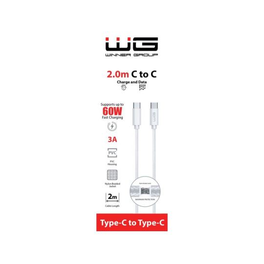 WG - Datový kabel Type-C na Type-C, 2 metry, 3A, 60W, bílá