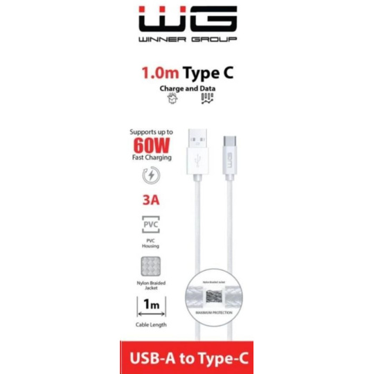 WG Datový kabel Type C-USB-A/1m/nylon braided/white