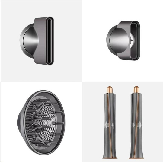- 2× obousměrné Airwrap nástavce - dvojice nástavců pro natáčení vlasů ve dvou směrech, využívá proud vzduchu pro jemné tvarování bez extrémního tepla, vhodné pro vytváření vln a kadeří