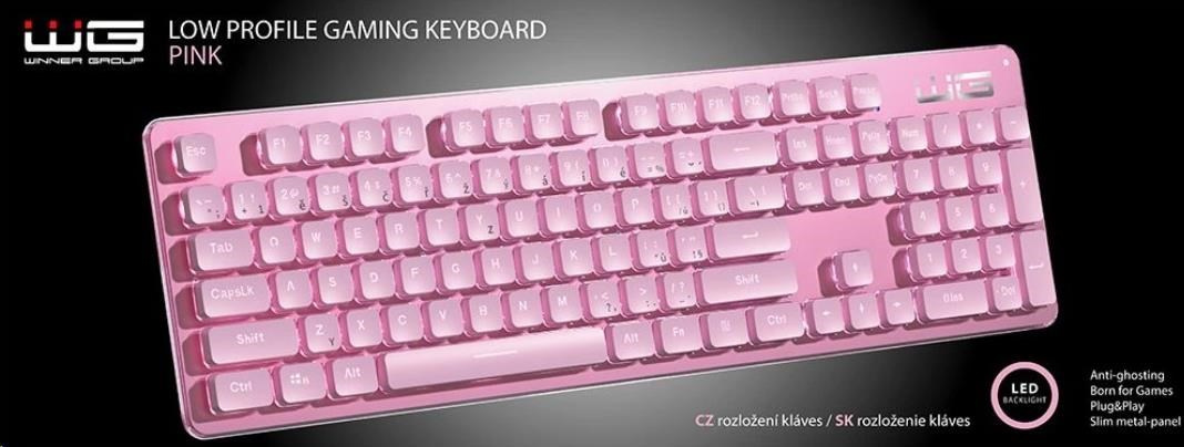 WG - Herní klávesnice WG, podsvícena, drátová, růžová