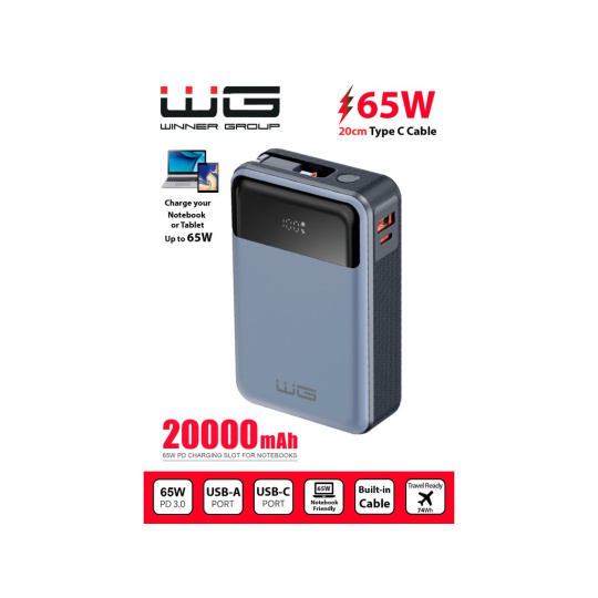 WG - Power Bank 20000 mAh, USB-C PD 65W, černá