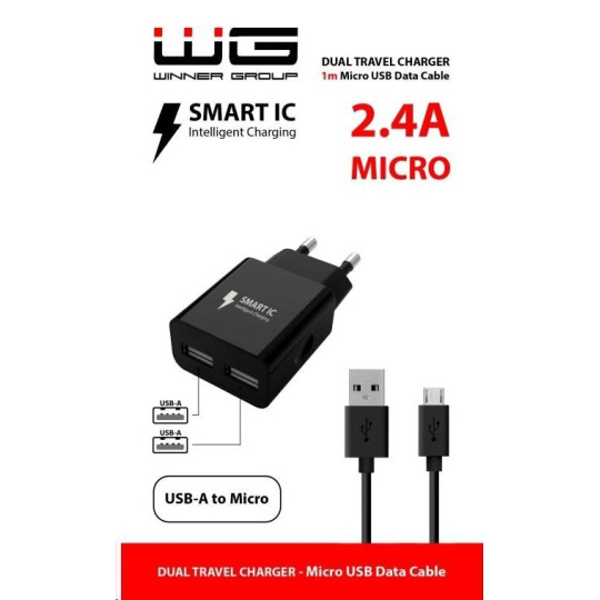 WG - Síťová nabíječka 2x USB-A 2,4A , Smart IC + kabel USB-A na Micro USB, black