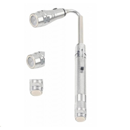 S naší inovativní teleskopickou svítilnou získáte všestranného pomocníka na každém kroku. Tento jedinečný produkt kombinuje svítilnu, výsuvnou teleskopickou tyč s ohebnou částí a užitečné magnety na obou koncích svítilny, což ji činí opravdu multifunkční.