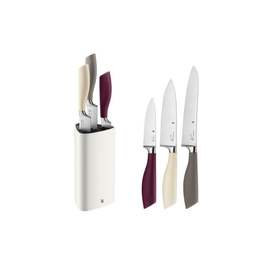 Blok na nože je užitečným doplňkem každé kolekce nožů. Navíc jde o bezpečnou a praktickou formu skladování. WMF nabízí bloky na nože v různých provedeních. Všechny modely jsou flexibilní a lze je použít pro jakýkoli typ nože. Bloky na nože WMF jsou k dispozici prázdné nebo vybavené noži z kolekcí Chef's Edition, Grand Gourmet, Grand Class, Spitzenklasse Plus a Kineo. Ať už si vyberete jakýkoli, blok na nože bude dokonalým způsobem, jak chránit vaše nože a zajistit, aby byly vždy po ruce.