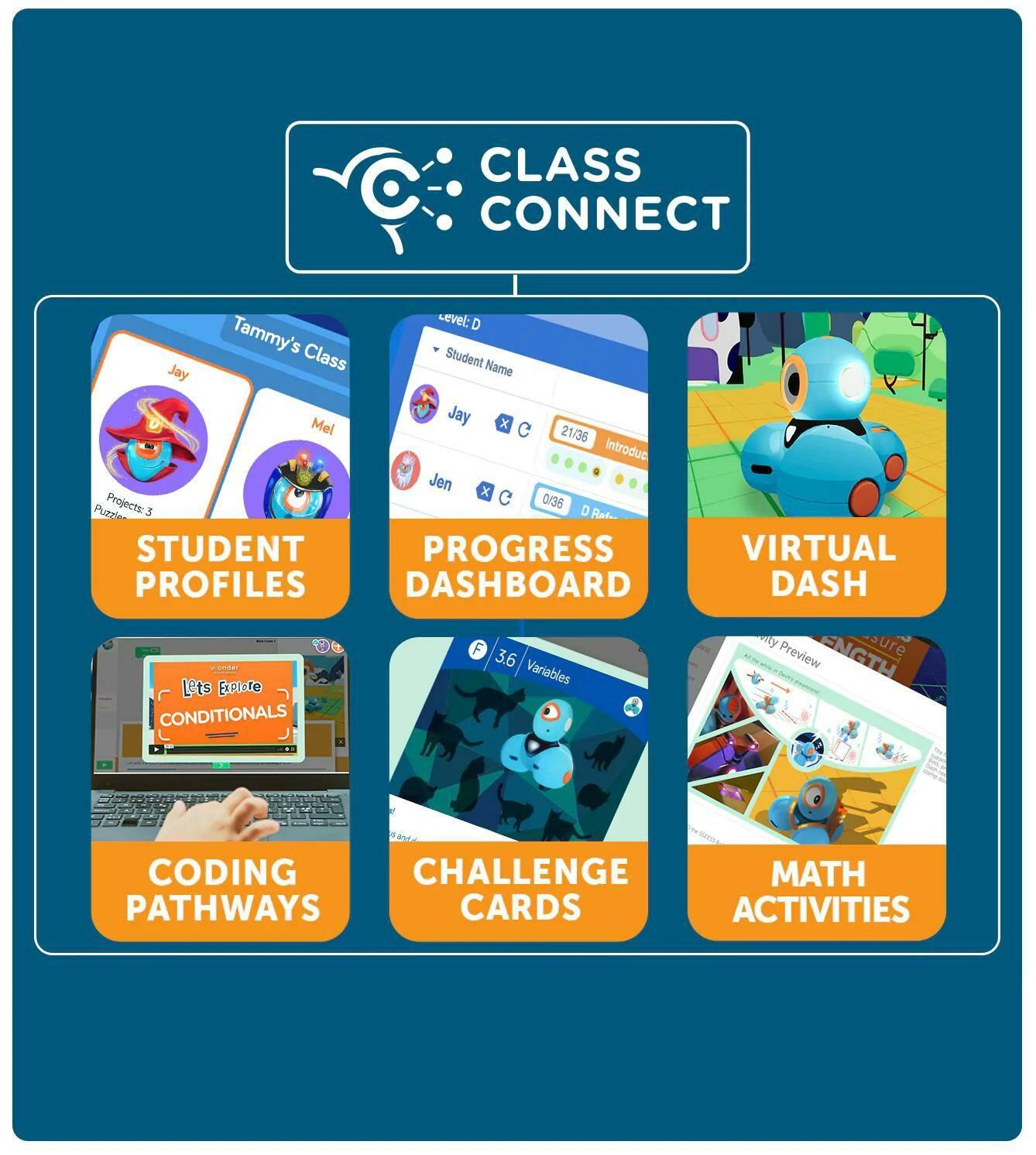 Wonder Pack obsahuje veškerý hardware a software, který potřebujete k tomu, abyste dětem ve třídách zpřístupnili programování! Toto balení obsahuje Sketch Kit, který z robota Dashe udělá kreslící nástroj. Součástí je také Launcher, Gripper Building Kit a dvojice LEGO konektorů – ideální způsob, jak získat kompletní sadu příslušenství! Součástí tohoto balení je také roční licence na Class Connect pro 2 studenty. Díky platformě Class Connect mají žáci k dispozici rozsáhlou zásobu lekcí, aktivit a hádanek, které mohou plnit v aplikaci Blockly a naučit se tak důležité dovednosti v oblasti programování a aplikovat je na reálné příběhové výzvy. Obsah balení: Dash robot Sketch Kit Launcher Gripper Building Kit Building Brick Connectors.