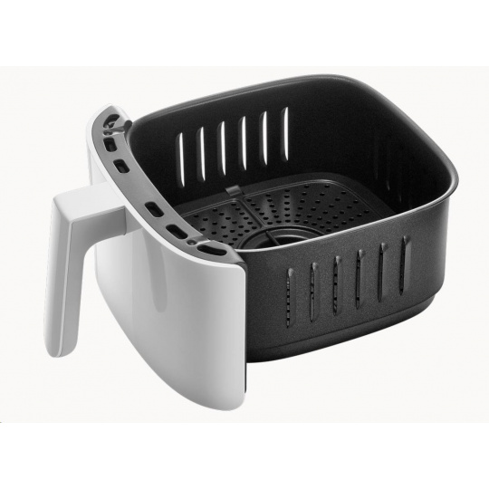 Olej uvnitř jídla je důkladně smažen 360 ° cirkulací ohřátého vzduchu a poskytuje lahodné jídlo s menším množstvím tuku. Vysokorychlostní cirkulace tepelného proudu zajišťuje rovnoměrné ohřívání pokrmů, vytváří křupavou vnější vrstvu a vnitřek zůstává měkký. Po dokončení vaření je olej filtrovaný z jídla jasně vidět na dně koše a jídlo chutná stejně, jako by bylo smažené na oleji. Jídlo je tak chutné a navíc s nízkým obsahem tuku!
