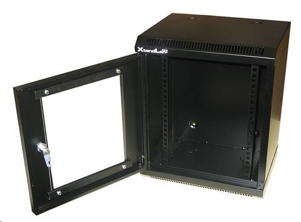 XtendLan 10" nástěnný rozvaděč 9U 350x280, nosnost 50 kg, dveře z plexiskla, svařovaný, černý