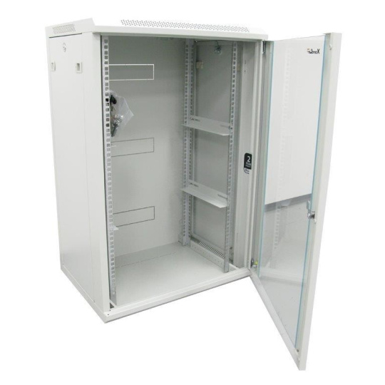 XtendLan 19" nástěnný rozvaděč 18U 600x450, nosnost 60 kg, skleněné dveře, svařovaný, šedý