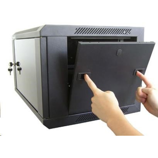 XtendLan 19" nástěnný rozvaděč 6U 600x450, nosnost 60 kg, skleněné kouřové dveře, rozložený, černý