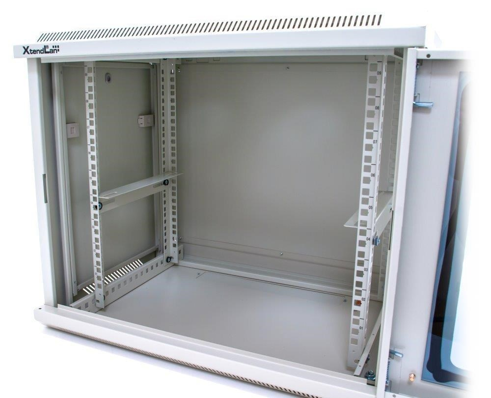 XtendLan 19" nástěnný rozvaděč 9U 600x450, nosnost 60 kg, skleněné kouřové dveře, svařovaný, šedý
