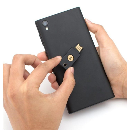 - Podporuje autentikační protokoly FIDO U2F a OTP pro webové služby či desktopové aplikace